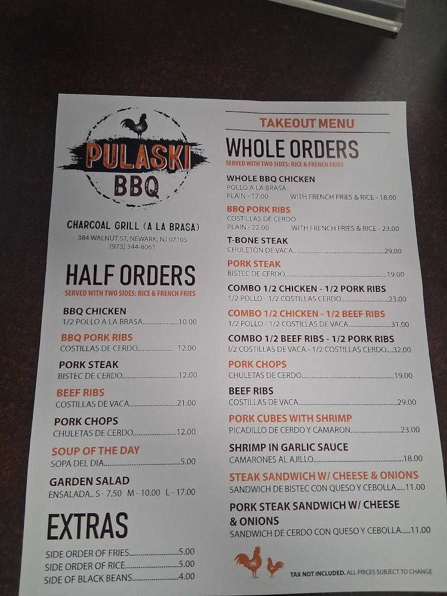 Welcome to Pulaski BBQ, a beloved gem located at 384 Walnut St, Newark, NJ. Renowned for its exceptional barbecue dishes, Pulaski BBQ offers a menu that focuses on simplicity and flavor. Patrons rave about the juicy pork ribs, perfectly seasoned and grilled to perfection, paired expertly with yellow rice and crispy fries. The generous portions and affordable prices make Pulaski BBQ a standout in the Ironbound district.